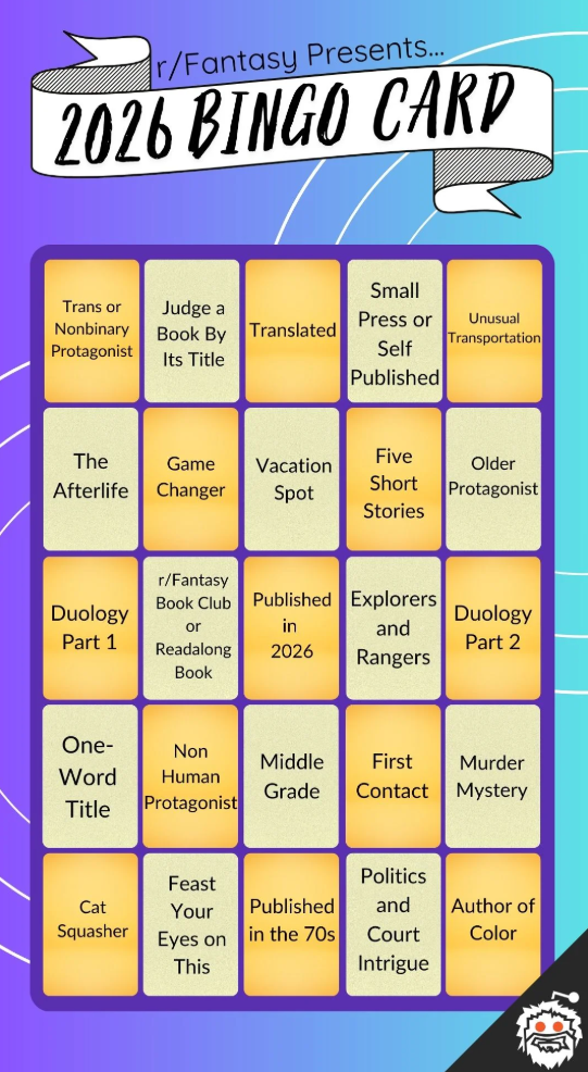 Fantasy Book Bingo is a yearly reading challenge within the speculative fiction book community on reddit. It runs from April 1st - March 31st every year. The goal of Bingo is to find new SFF books and authors, venture out of reading comfort zones, and connect with others through the joy of reading.